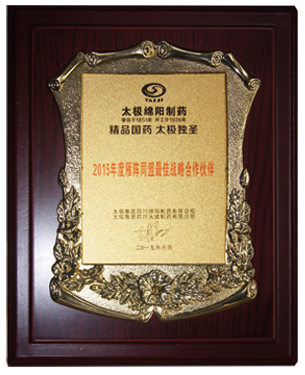 2015年度雁陣同盟最佳戰(zhàn)略合作伙伴-太極綿陽制藥